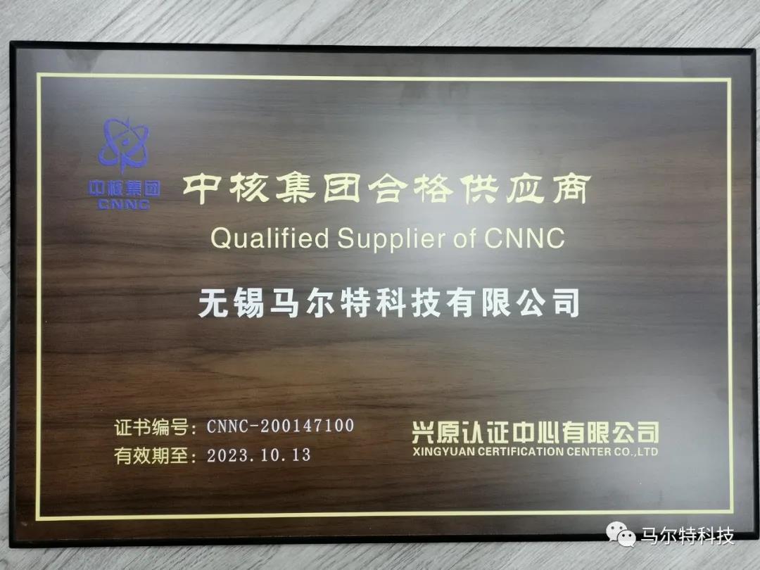 【喜報(bào)】無錫馬爾特科技有限公司成為中核集團(tuán)合格供應(yīng)商 2022-01-10 無錫馬爾特科技有限公司成為中核集團(tuán)合格供應(yīng)商...詳細(xì)內(nèi)容